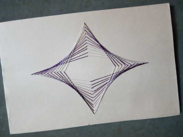 se trata de una de las cartas de diseño de rosca simple arte. en este he intentado hacer un diseño con forma de triángulo.para hacerlo que necesitamos-tarjeta-seda hilo de rosca (puede utilizarse hilo normal)-aguja-lápiz, escala y compás para dibujar