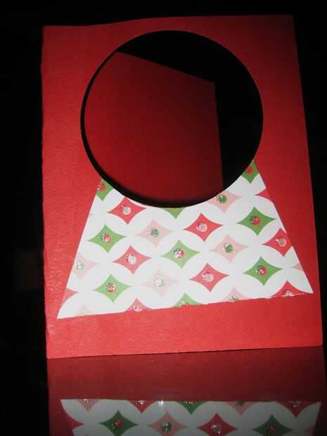 Con su papel de scrapbooking, recorte un triángulo o un rectángulo para la base de tu Pocket. Pegamento a la tapa de la tarjeta y corte a lo largo del borde del círculo para que se vea como el círculo es la base.