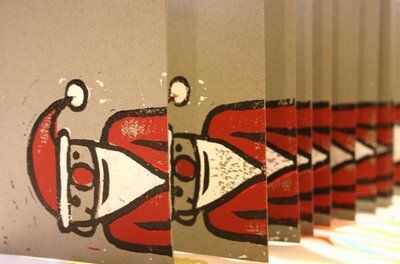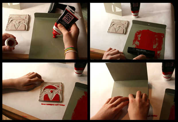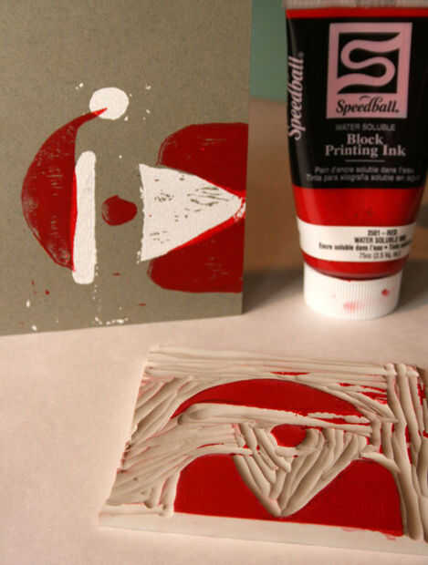 si imprime una impresiones de color, bien, cortar el bloque de linóleo, golpear un pedazo de papel sobre él, recorte el papel y listo.Si usted quiere hacer la impresión de múltiples bloques, tienes que tener alguna manera a la línea del borde del pap