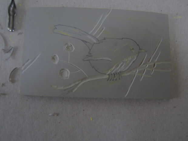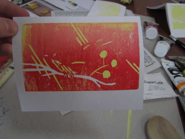 tradicionalmente, hacemos nuestras tarjetas de Navidad con un bloque de diseño impreso. Ahora que nuestros hijos son mayores, están haciendo nuestras tarjetas de este año. Mi hijo dibujó un Santa y mi marido hizo las "separaciones de color". He