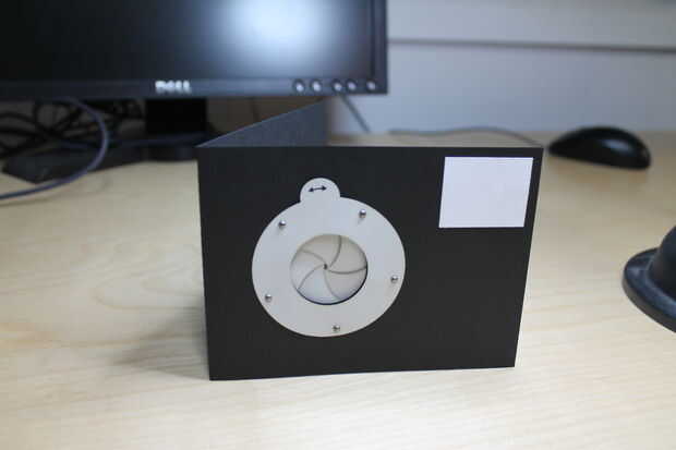 Modmischief había creado esta versión mejorada de la tarjeta de felicitación de iris mecánico de YuKonstruct vacaciones tarjeta de construcción denoche.