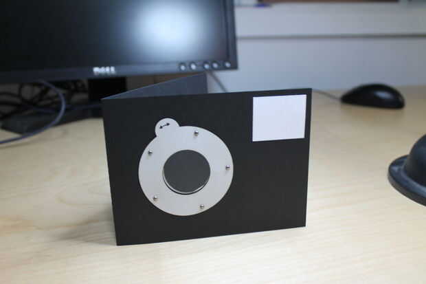 Este nuevo diseño resuelve el problema de las piezas del obturador en los extremos de los clavitos y simplifica la construcción de la tarjeta por que la tarjeta base una sola pieza de cartulina.
