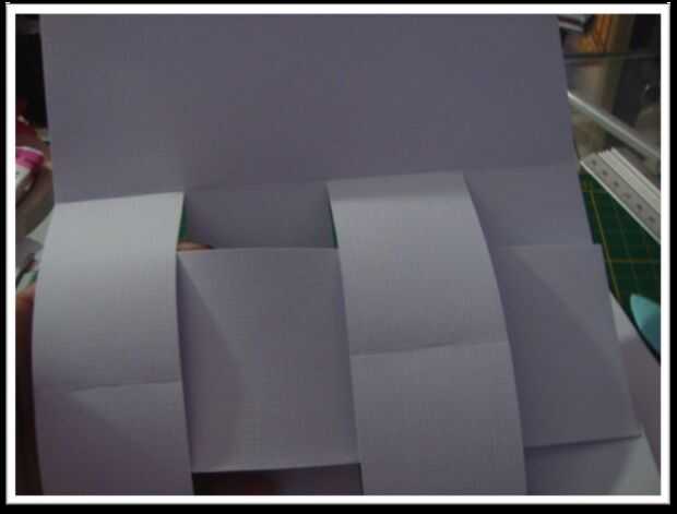 Inserte las tiras de "" el primer pedazo de papel, tejiendo dentro y fuera de los cortes.