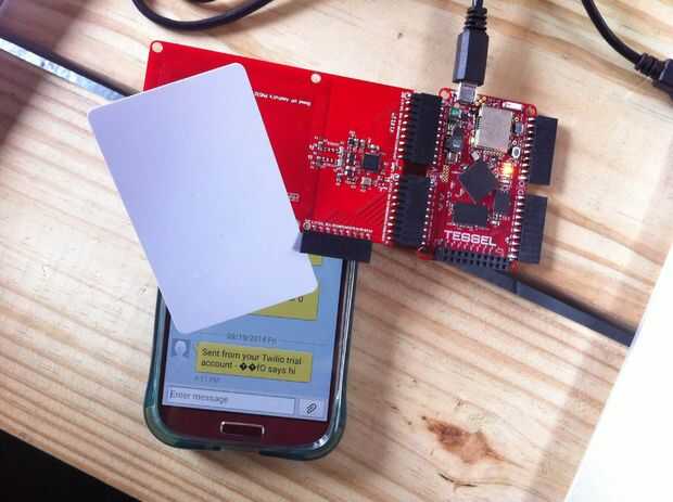 Toque una tarjeta en un lector de RFID Tessel para enviar un texto Twilio a cualquier teléfono.