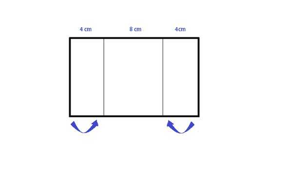 El siguiente paso es el plegamiento: se divide la tarjeta en 3 partes: 4cm - 8cm-4 cm