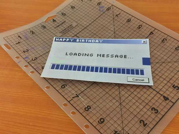 Utilice un par de tijeras para cortar las 3 partes de la tarjeta de 2 hojas de papel que sólo imprimió. Luego use un cuchillo X-ACTO para quitar todos los rectángulos azul oscuros desde la parte delantera de la tarjeta. Este ser tedioso, así que Tómese su tiempo y asegúrese de que usted le está dando su mejor! Esto también será muy vigoroso en las manos así que si usted necesita, cada unos rectángulos colocan el cuchillo, flexión de la mano y reanudar el corte. No te olvides de cortar uno más grande en el extremo derecho de la tarjeta.