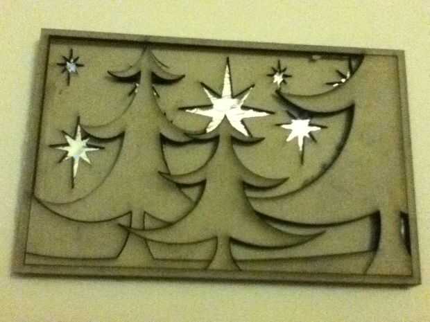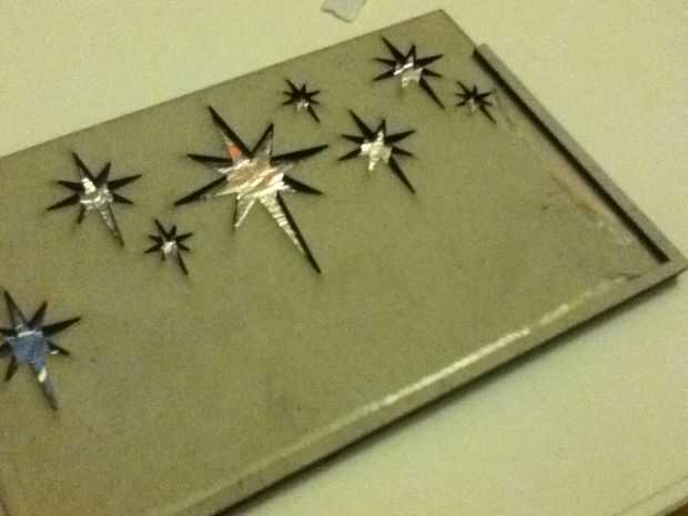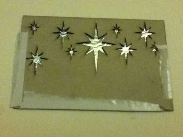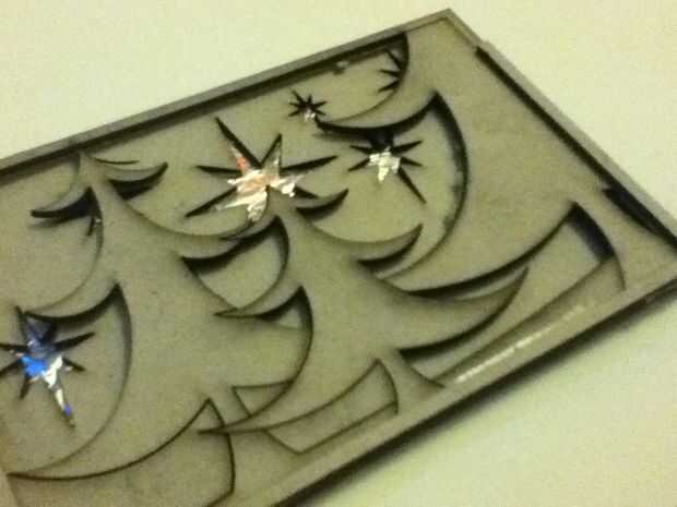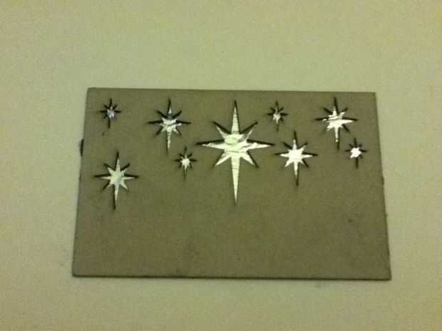 Después de cortar las capas en el cortador del laser, construido las capas utilizando cinta adhesiva de doble cara para mantenerlos juntos. Le puse papel de aluminio en la parte posterior para agregar un poco chispa.