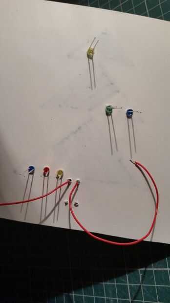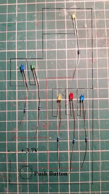 Tienes que soldar cada resistor, a cada pata larga del LED (para el 3.7V versión de batería)