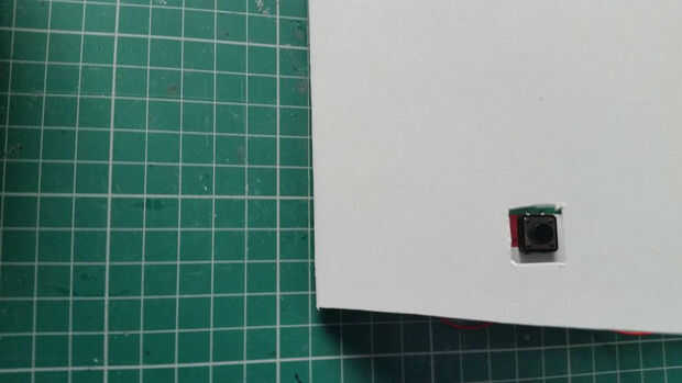 Cortar el espacio para el interruptor momentáneo en la parte delantera de su tarjeta.