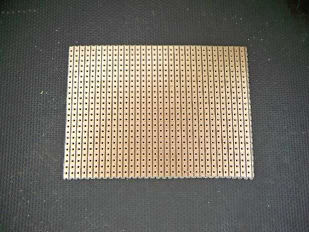La veroboard (tira Junta) necesitará cortar 32 agujeros 23 agujeros.