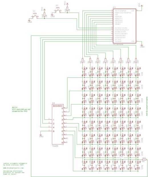 Es muy probable que algunos de los componentes que va a utilizar no coincidirá con mis componentes exactamente (por ejemplo la matriz de led y pulsadores) así que es importante que usted estudie el diagrama esquemático y de largo como usted alambre juntos tuyo por consiguiente, usted será muy bien!
