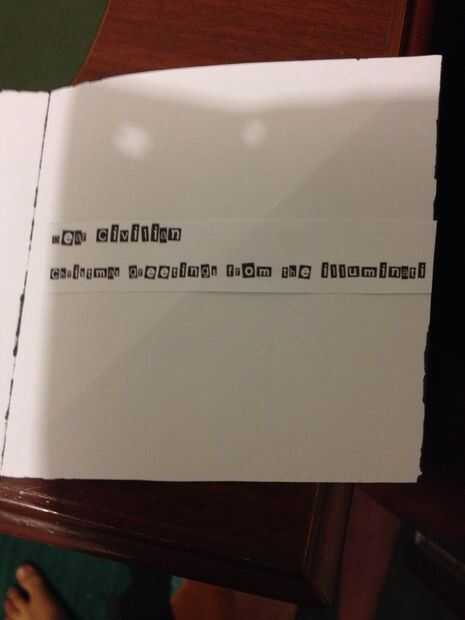 Puede dejar allí, pero, si quieres mantener el estilo, debe ir en 1001 fonts.com y obtener la fuente de la fábrica de tijereta. Puede escribir cualquier cosa. Algunos pueden ir para civil sencillo, querido, saludos de Navidad de los illuminati, pero depende de usted. Imprimir y pegar en la tarjeta.