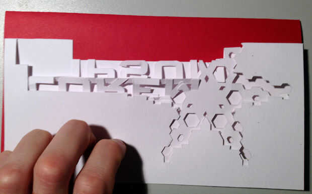 Navidad está a la vuelta de la esquina. Trotec láser Canadá le gustaría dar a nuestros espectadores y abonados un regalo, una tarjeta de Navidad hecha a mano que fue grabado y corte con láser Speedy 400.Copos de nieve de mano dibujó en un pedazo blan