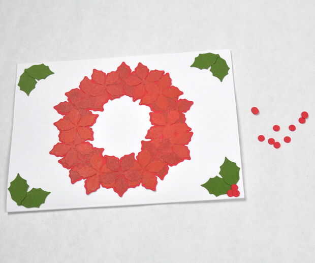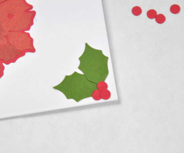 Sólo quería esto en la parte frontal de la tarjeta, así que llena el espacio en blanco, poniendo dos hojas y tres rojo bayas (círculos rojos) en cada esquina.