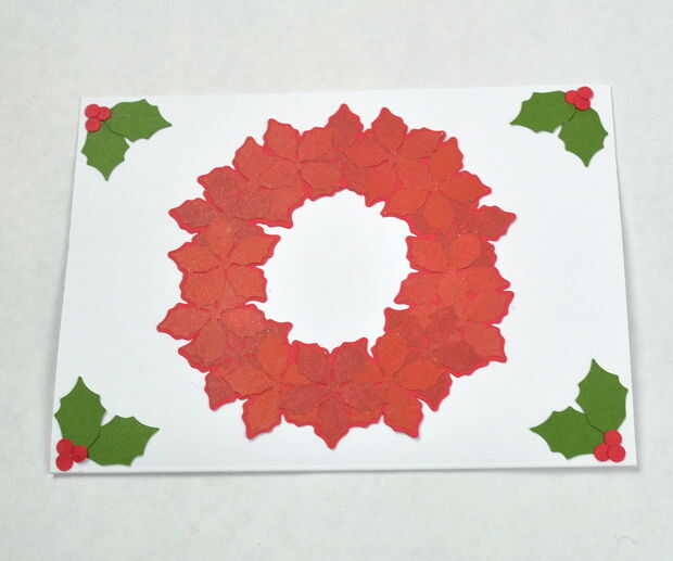 Con el tempestuoso clima ventoso, lluvioso que hemos tenido, he decidido elmejor lugar para mi era mi sala de arte, es el momento de empezar a trabajar en mis tarjetas de Navidad. Aquí está la tarjeta que se me ocurrió hoy.Corté la flor de Pascua de