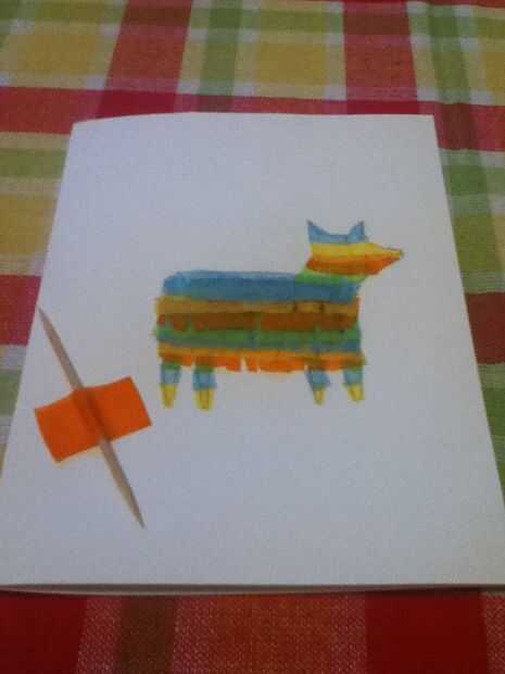 Puede tomar un pedazo de papel crepé (o washi tape si usted tiene cualquiera) y utilizarlo para pegar en el palillo de dientes. El palillo es que el 'palo' utilizado para abrir golpear la piñata.