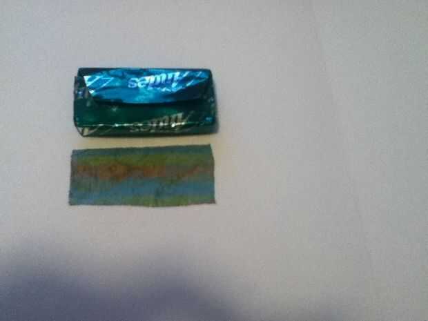 Tomar una o dos tiras de papel crepé y pegar en tu candy orificios para evitar que el caramelo caiga (obviamente).