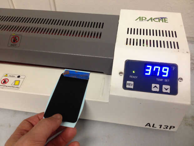 mi objetivo fue desarrollar un proceso para crear fácilmente relieve dorado letras para el uso en tarjetas de nombre de estilo. Estas tarjetas se componen de dos capas de papel laminado con una hoja de oro compuesta en el centro de corte láser.Hice e