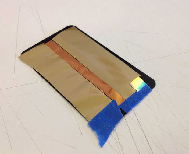 Deje secar al aire de la tarjeta. Cortar la hoja que desea utilizar la copia en la tarjeta o la imagen. Coloque el lado gris de la hoja sobre el toner y cinta hacia abajo para que no se mueva. Sólo utilice cinta de un lado porque tienes que correr a través de la máquina otra vez.