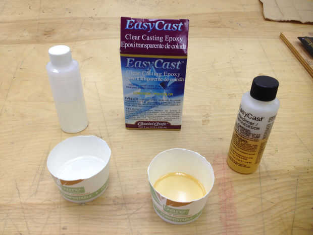 Asegúrese de que la tarjeta es a nivel de la tabla y lejos de polvo, porque se llevará durante la noche para secarse. A mezclar las dos partes igualmente. Tendrá un aspecto amarillento que cuando se mezclan. Pero no te preocupes, cuando esté seco será claro. Qué será realmente claro es cuando entregue su tarjeta de visita, en serio!