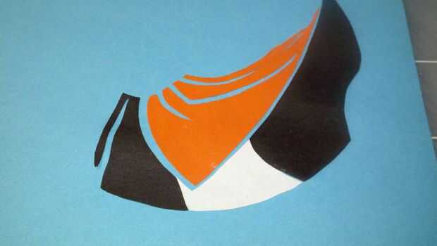 Recortar la sección que corresponde con el color del papel. Corte a través de ambas capas dentro de las líneas negras y tratar de evitar que se dañen las demás partes del dibujo.