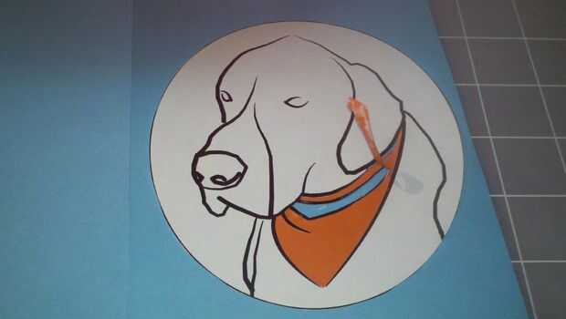 Pegar el recorte de color sobre la base de la tarjeta, utilizando el dibujo como guía.