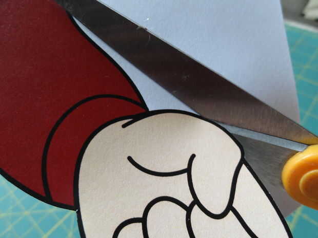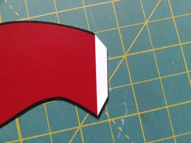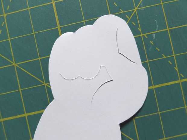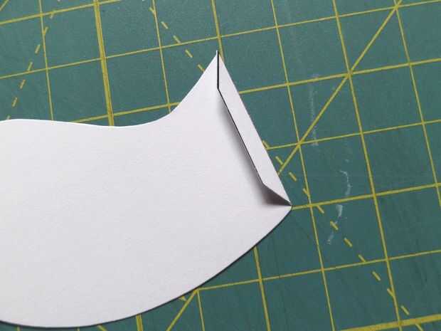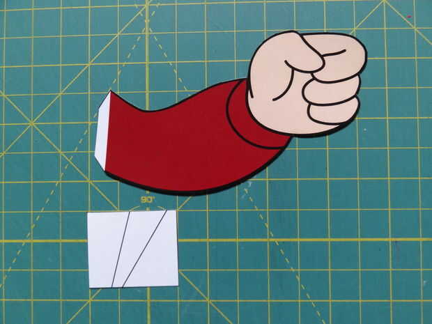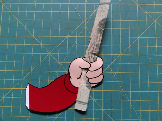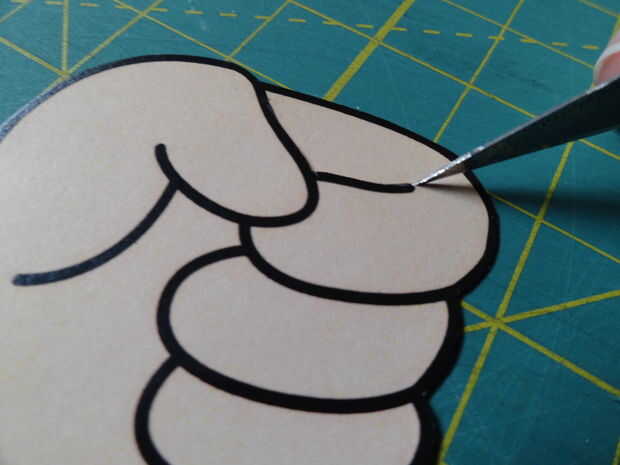 Hice las líneas negras alrededor de la frontera un poquito más grande, así que tendrás algún margen de maniobra. Hacer una puntuación en la parte trasera del brazo a lo largo de la aleta blanca, así que dobla detrás. A continuación, cortar con cuidado las líneas dentro de la mano (las fotos de referencia), por lo que va a ser capaz de mantener algo de dinero.