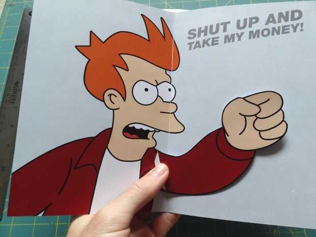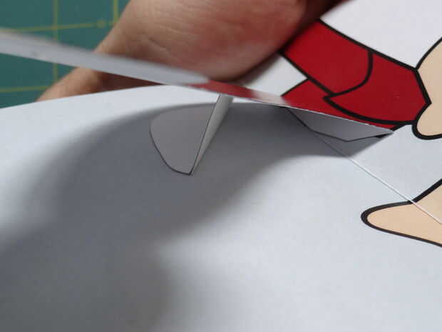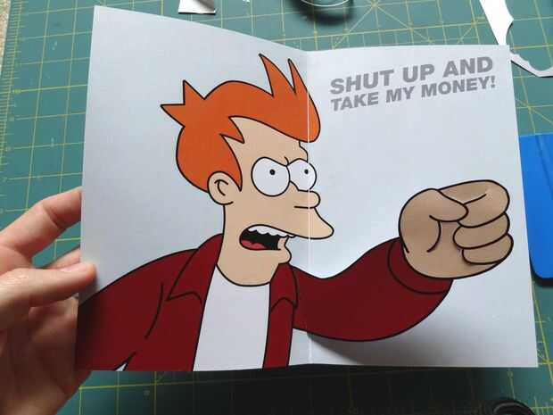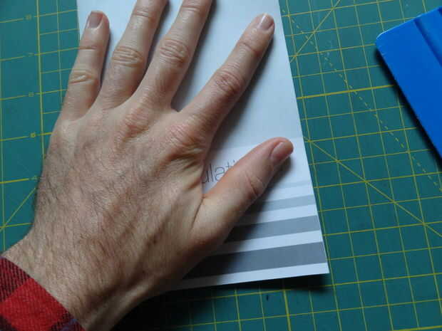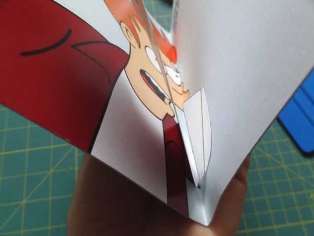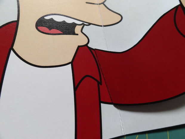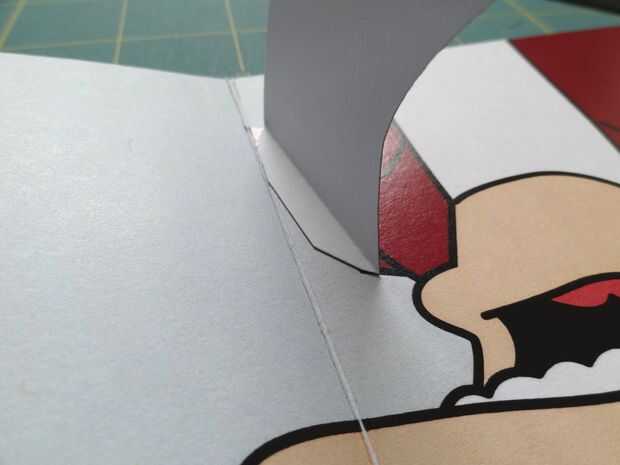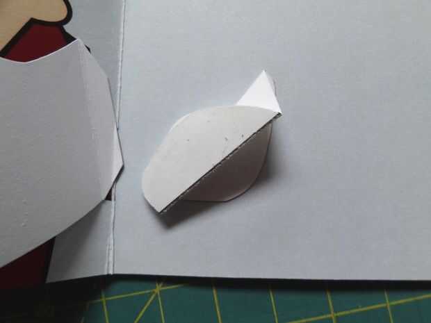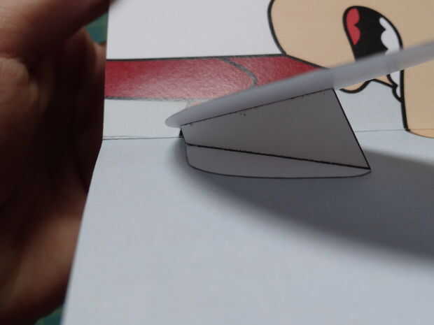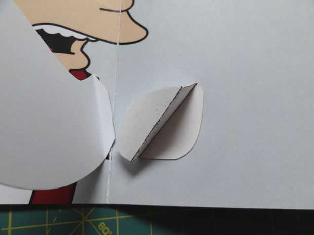 Presione hacia abajo la caja popout plana, y puedan así los pliegues. Sostienen el brazo en el lado izquierdo de la tarjeta (con la caja todavía plana) y poco a poco cerrar la tarjeta. Presione firmemente donde es popout caja, pegar en el brazo.