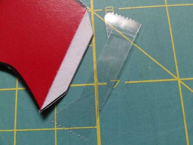 Empieza fácil colocando el brazo. Alinee la posición a donde va (que se superpone donde termina el rojo, un poco) antes de empezar a poner la cinta en él. Consigue un trozo de cinta y colóquela sobre la parte blanca del brazo. Recorte el exceso, luego conéctelo a la tarjeta principal.