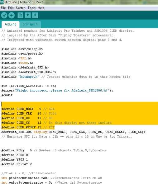 El código implementa las librerías para la comunicación con el display, después declaramos las matrices conformadas por imágenes previamente tratadas con el siguiente programa. En este caso declaramos 5 matrices forman la segunda imagen de este paso con la palabra Te Amo y en la parte final implementamos pwm mediante condicionales para cuando vaya variando el valor del potenciometro cambiemos de imagen.
