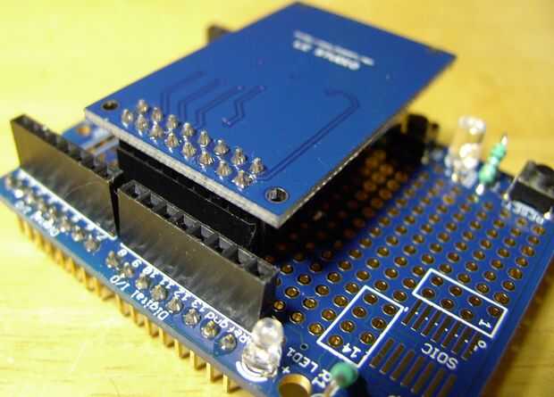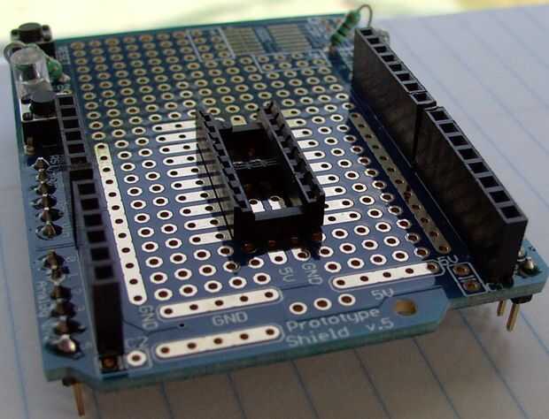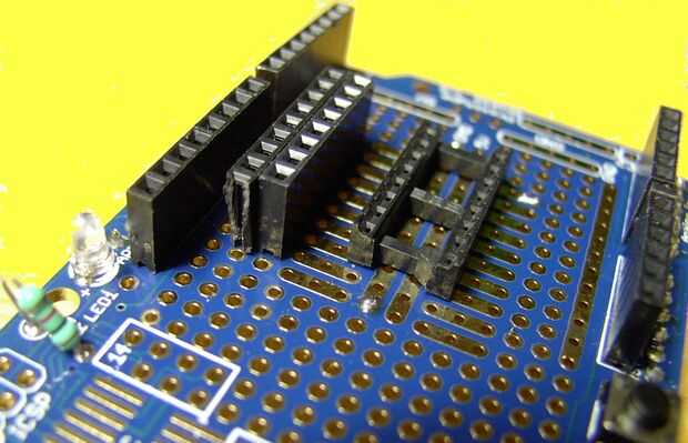 protoshield. En primer lugar, colocar y soldar el zócalo del IC.