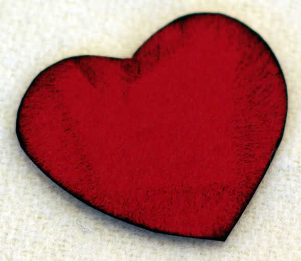 Decorar la parte delantera del otro corazón. Si está usando un tampón de tinta, arrastre sus bordes a lo largo de la almohadilla de tinta, y unas palmaditas de luz cerca de los bordes para crear un look Grunge. Si está utilizando lápices de colores y un bolígrafo/lápiz, decorar como usted desee.