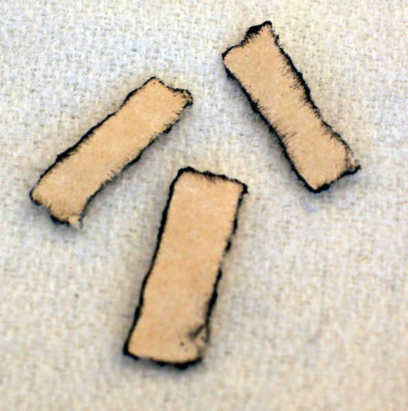 Arrastre y acariciar los bordes de cada pedazo roto a lo largo de la almohadilla de tinta. Si está utilizando un crayón, hacer lo mismo con el lado de la tiza. La idea aquí es crear de nuevo un look Grunge.