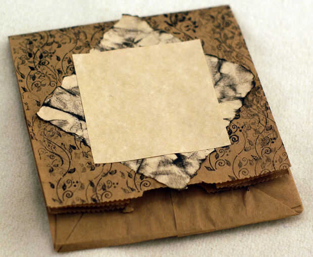 Pegue el llano, sin modificaciones, 3 "x 3" pieza de papel perpendicularmente a la 4 "x 4" pedazo de papel. Esto pone a los bordes de la pieza paralela de 3 "x 3" a los lados de la tarjeta. La 3 "x 3" pieza debe estar centrada en la parte superior lo 4 "x 4" pieza.