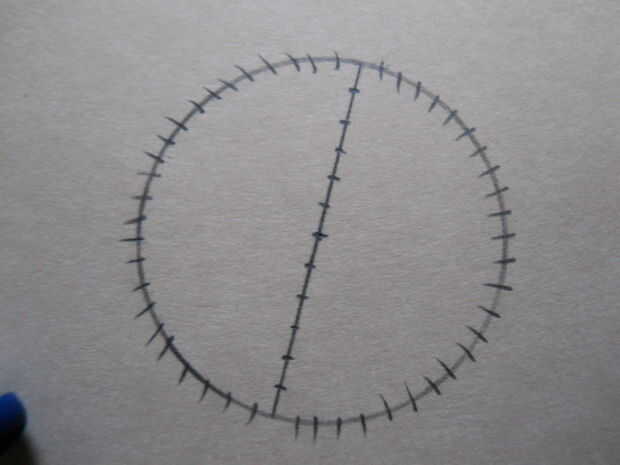 Trace una línea vertical inclinada para dividir el círculo en 2 semicírculos