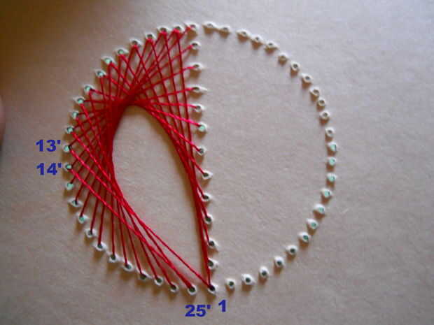 al llegar al punto 1 otra vez... la aguja a través de punto de 25' y pase a través de 14' luego tomar la aguja a través de 15' y pasar a través de 24' entonces nudo en la parte posterior (hacer nudo correcto o de lo contrario sello nudo con cinta)