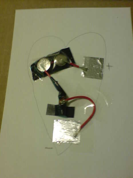 Hacer esta tarjeta para el día de San Valentín o cualquier día! Usted necesitará algunas herramientas simples como pinzas, tijeras, tijeras y una pistola de pegamento. Usted también necesitará:Pluma de tinta conductora desnudaBatería de la monedaPinz