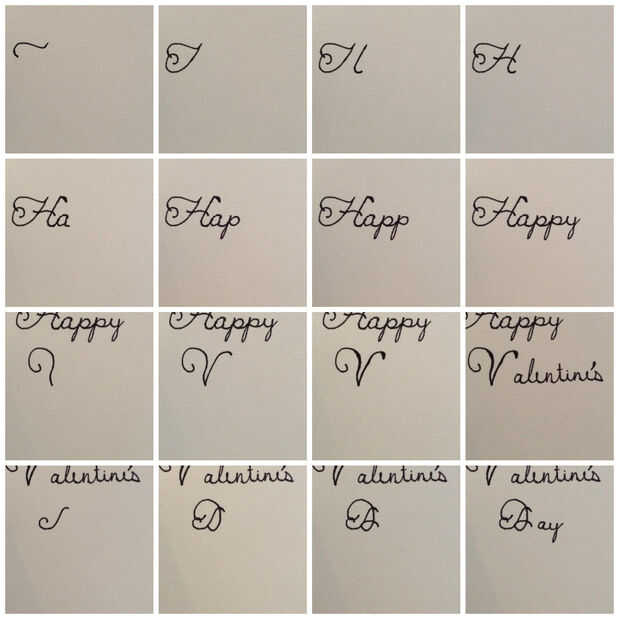 Este paso le mostrará cómo escribir letras de lujo en la parte delantera de su tarjeta. Puedes practicar en un pedazo de papel de desecho antes de la escritura en la tarjeta. La capital de las letras son de lujo son de la minúscula cursiva común. Una vez han practicado lo suficiente puedes escribir en la tarjeta.