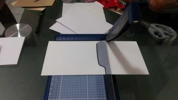 Medir la pieza de cartulina blanca con la tarjeta ya construida. Usted quiere asegurarse de que el cartón se corta 1cm más pequeño que la tarjeta, esto creará un efecto de enmarcado.