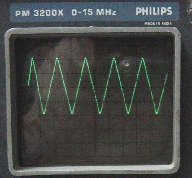 La pantalla del osciloscopio muestra un desplazamiento de la onda Triangular de 4V por + 2V.