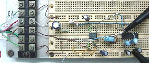 El prototipo fue usar el Max 232 y LF353 DIP los componentes a bordo de pan.