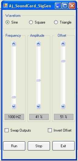 La GUI simple se utiliza para control de salidas de la tarjeta de sonido de PC e indirectamente la Aj_SoundCard_SigGen.