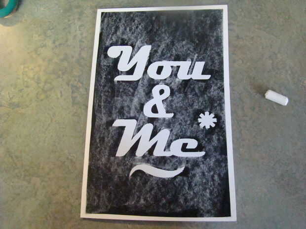 a continuación, tomó un trozo de tiza blanca y frota todo el vinilo de tablero de tiza.