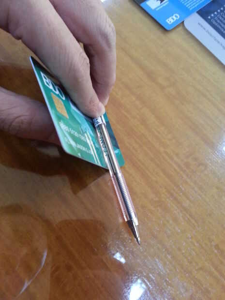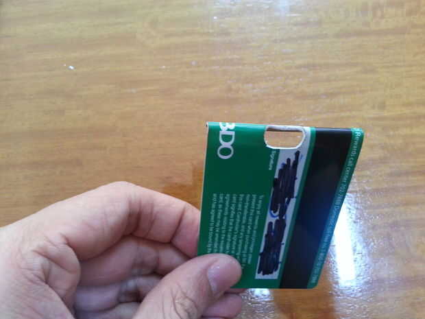 Después de hacer la línea donde se debe doblar la tarjeta, caliente la superficie doblada de la tarjeta con un encendedor para hacerla más flexible y fácil de plegar. continuar doblando la tarjeta hasta que el pliegue es alrededor de 135 grados de la posición original.