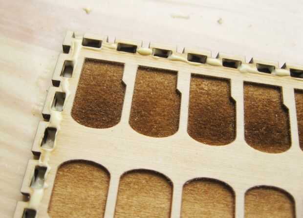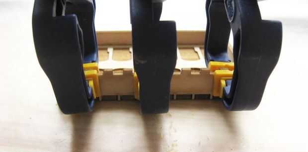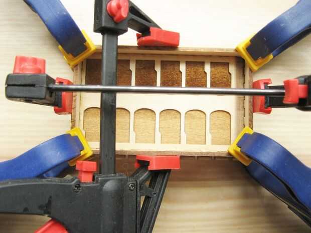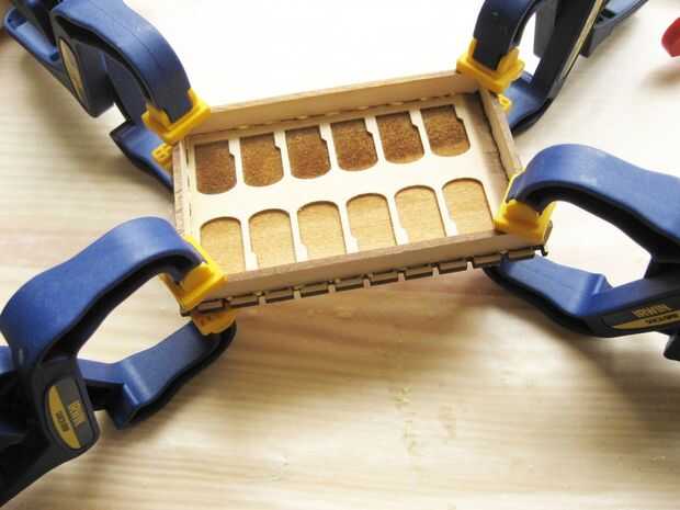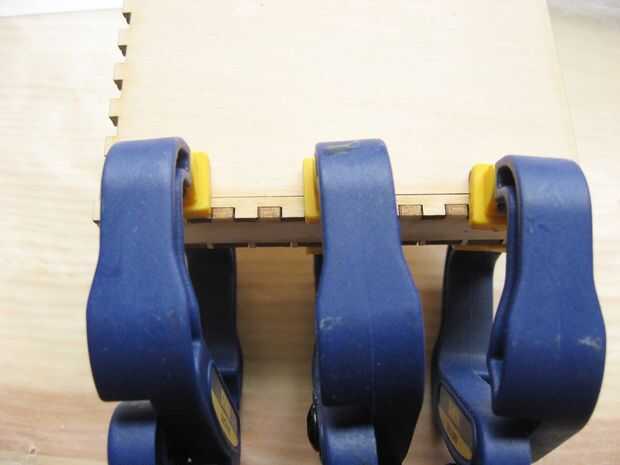 Pegue las piezas de la caja en capas desde adentro hacia afuera. Uso liberal de las abrazaderas al secar todo lo ayudarán a establecer juntos correctamente.