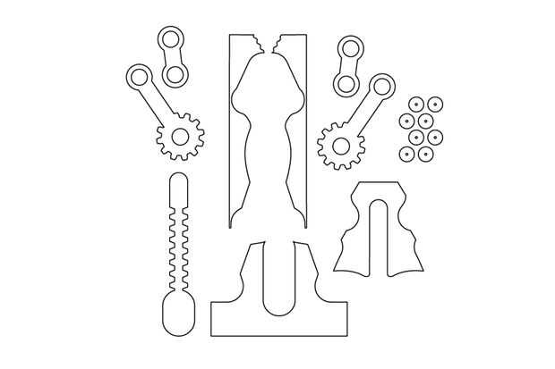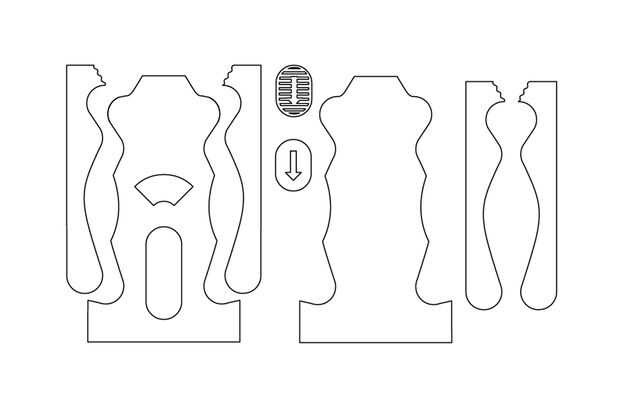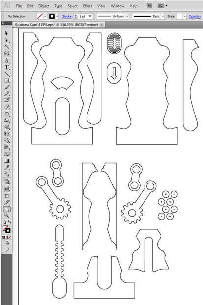 Cuando tenía el diseño básico de la tarjeta de claro en la mente de la mente, empezó a dibujar en Adobe Illustrator. Trazan las tres capas individualmente, luego cambiar de posición para ver qué tan bien se encajan entre sí al desplegar el mecanismo.