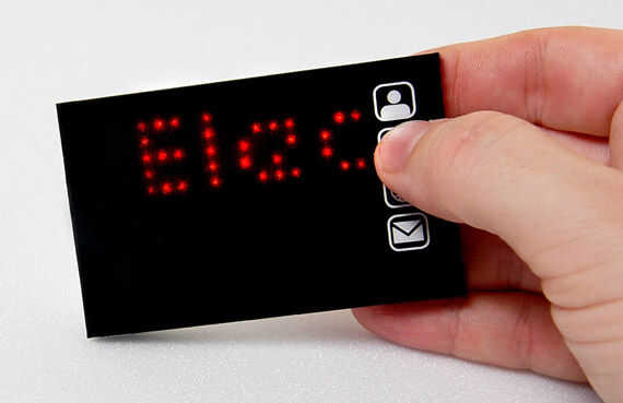 si mi tarjeta de visita de linterna no es avanzado suficiente para usted, entonces ¿qué tal uno con una pantalla gráfica completa sobre lo que puede ser personalizado para una serie de mensajes de desplazamiento? Este se podría hacer en cantidad para un costo de $5 piezas, y sólo es un poco más caro si usted está haciendo unos pocos. No cabrito de que se trata de un diseño fácil de hacer - no probarlo a menos que tengas muy buenos conocimientos de soldaduras y algo de experiencia en electrónica. Algunos de los componentes aquí son más pequeños que granos de arroz, por lo que sería útil tener buena vista así! Como la tarjeta de la linterna, es más bien una prueba de concepto que puede batir hacia fuera en cantidad, pero al menos podría dar una idea de lo que puede lograrse, y donde tarjetas de visita puede ser en pocos años de tiempo.
