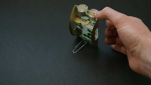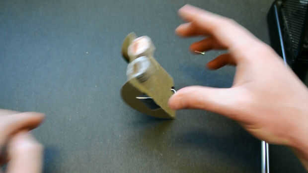 Usted puede ajustar el lazo en el clip de papel (o la forma de la pestaña de la tarjeta) y hacerlo más pequeño o más grande para alterar la trayectoria de la trebuchet.