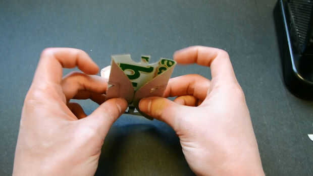 Primero es necesario quitar los contrapesos por solo tirando de los mismos. Entonces puede Desenlazar los brazos centro y dobla hacia los lados. Entonces pueden doblar los lados todos, y su munición de clip de papel se puede utilizar para ayudar a mantener todo cerrado.