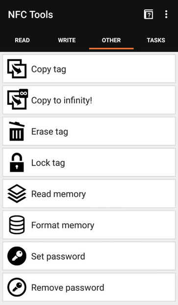 En primer lugar, compruebe si tienes chip NFC está vacío y listo para escriturar. Nuestro vino con un enlace a la aplicación que estamos usando en él. Simplemente encender comunicación NFC en el teléfono y mantener el chip en el teléfono para ver lo que hay en él.